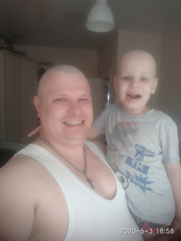 Я обрил его, а он обрил меня %). На следующей неделе у Сына начинается курс лучевой терапии, который будет длится около двух месяцев.